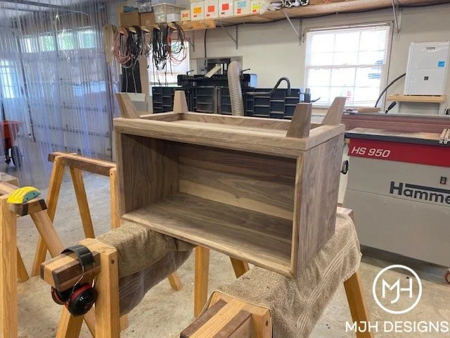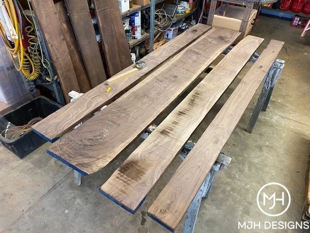 Next I selected black walnut boards at a specialty hardwood lumber dealer for their beautiful grain pattern and to be long enough for a continuous board to be the left side, continue across the top and come down on the right side, assuring a continuous grain picture.