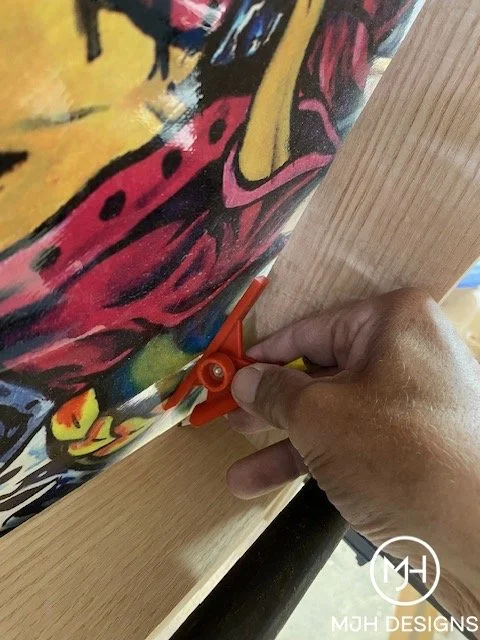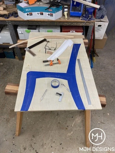 The backrest stretchers are curved in two directions to follow the outlines of the board and to highlight the great graphics on the back. I carefully transferred the outline of the boards to the stretchers and cut them to match the curves.