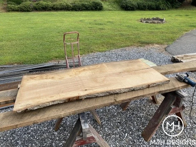 The wood is southern red oak I saved from a tree that a storm downed in my neighbor’s yard years ago.