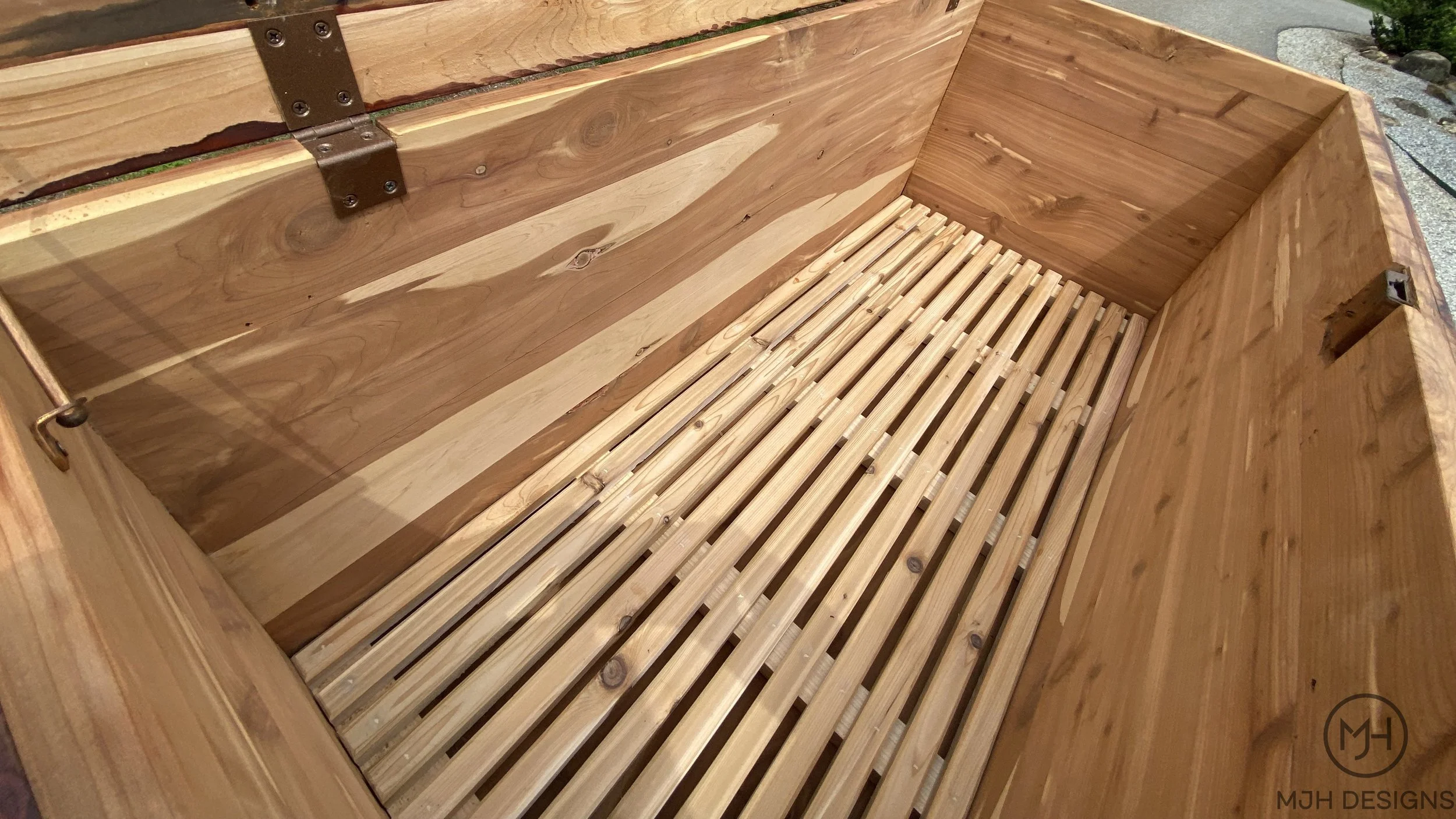 To make sure that blankets could be stored in the chest without getting musty I made a new wooden grate out of fresh cedar and left it unfinished to allow for air circulation from below.