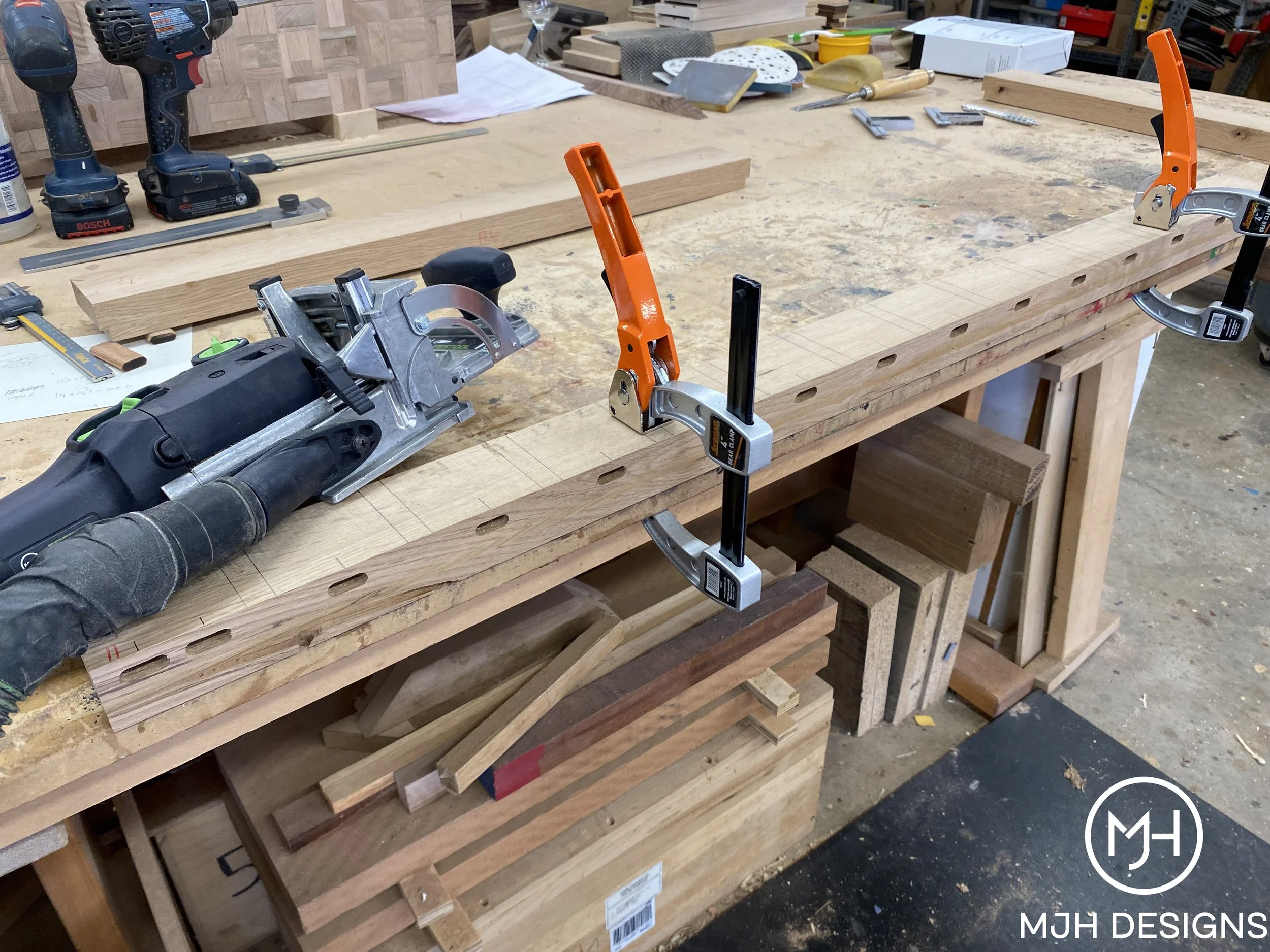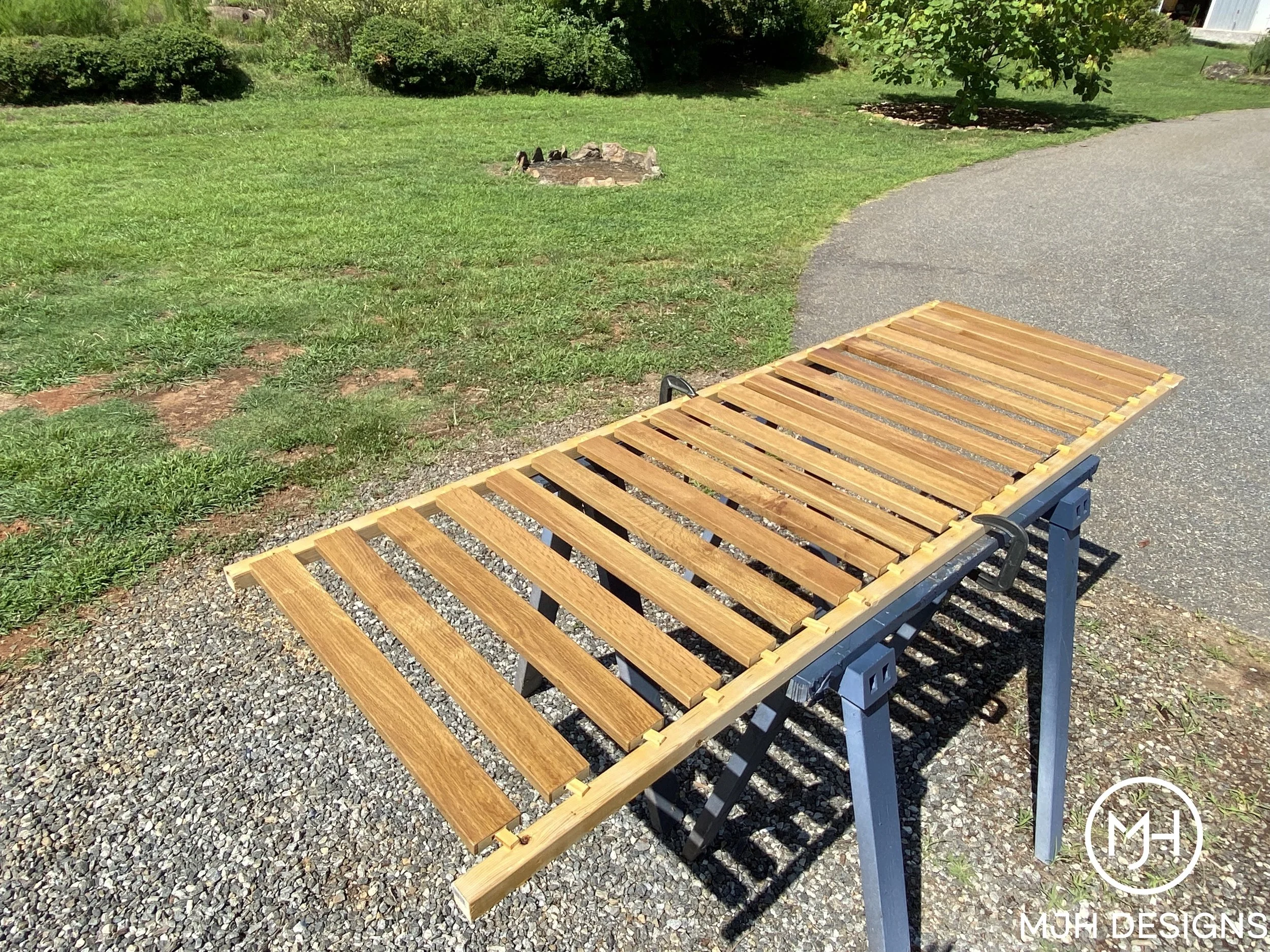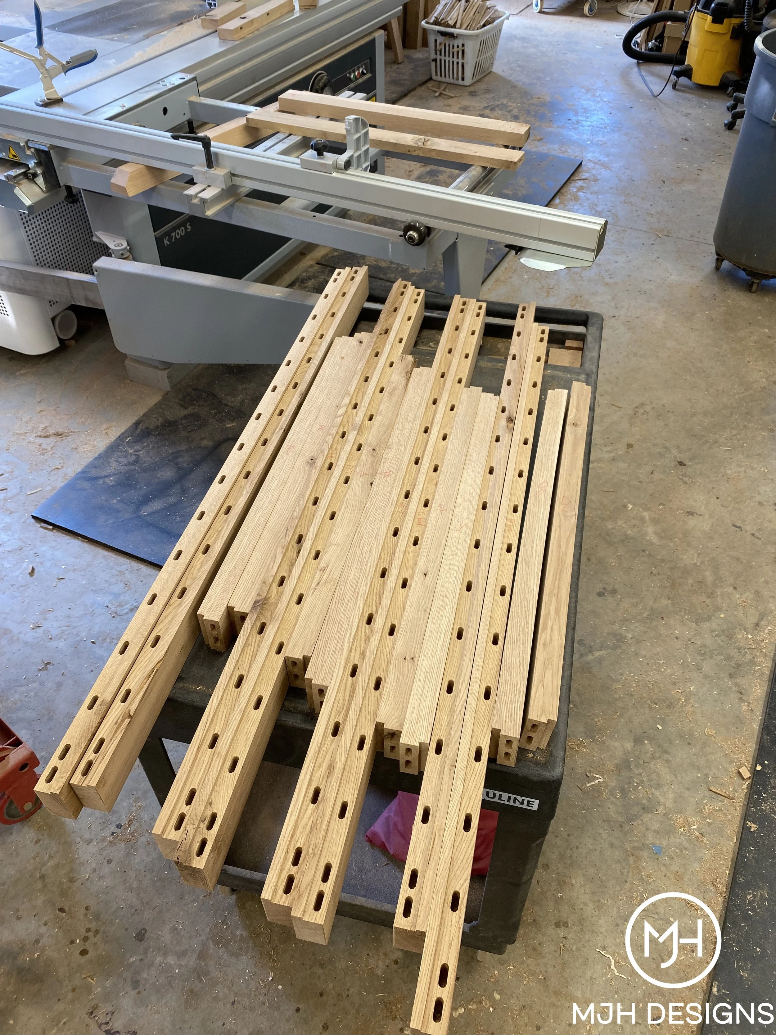 I used 1.25” thick white oak for strength and durability. The wood was air-dried to around 15%, making it ideal for an exterior installation. A rabbet was machined for the cross slats to rest on.