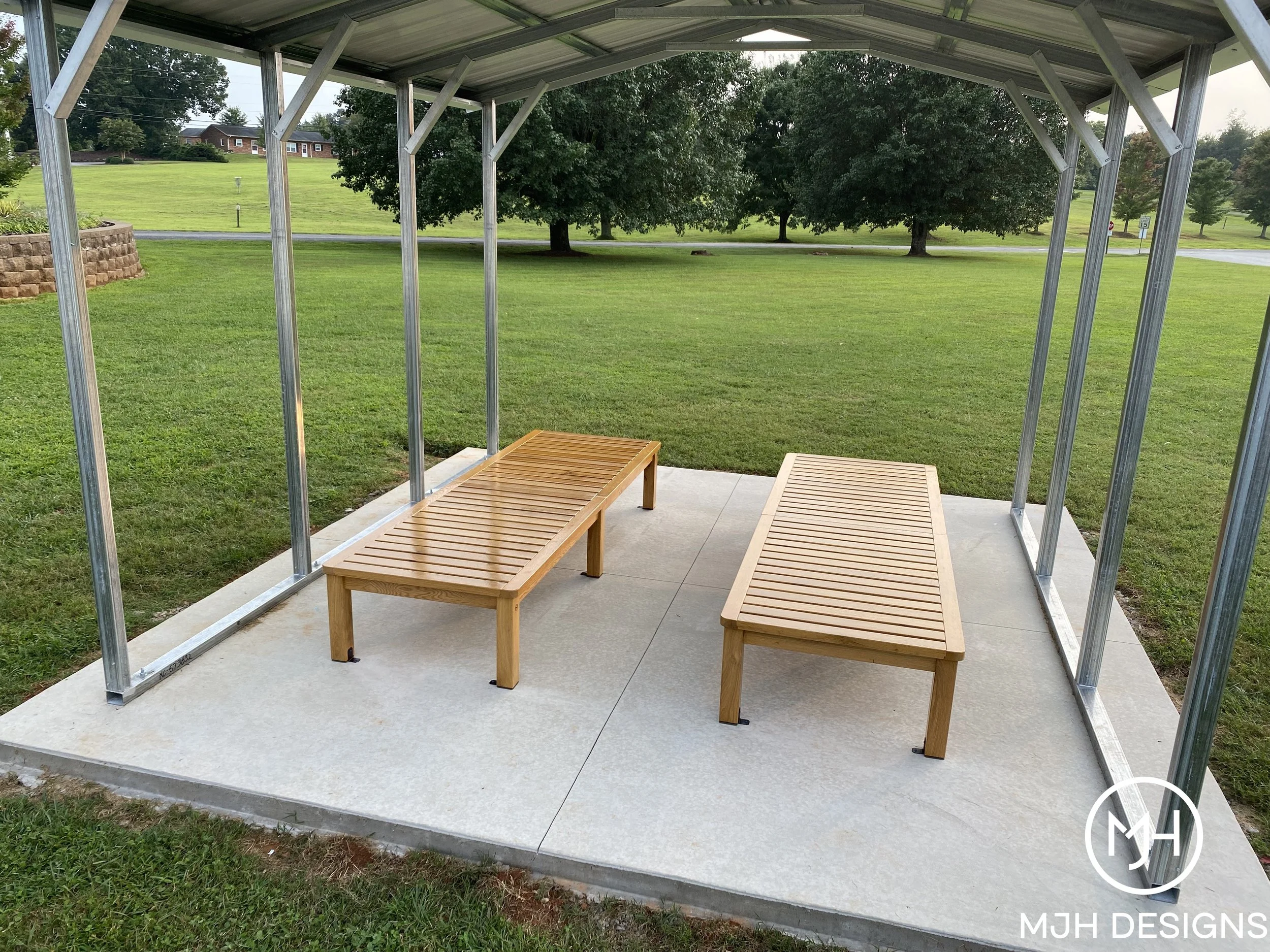 The Rotary Club of Hudson recently completed a great civic project by providing a new, covered meeting spot for students waiting to be picked-up by their parents. The club sponsored the installation of a concrete slab with a nice roof to keep the kids dry. All they needed to finish the project were benches for the kids to sit on. The benches needed to be wide enough for kids with backpacks to sit on both sides. I am honored that Rotary Club of Hudson, NC reached out to me and I was glad to help.